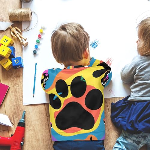Wudan Colorful Dog and Paw Big Girls Sweatshirt Hoodie Crewneck Kids Pullover Hoodie 1
