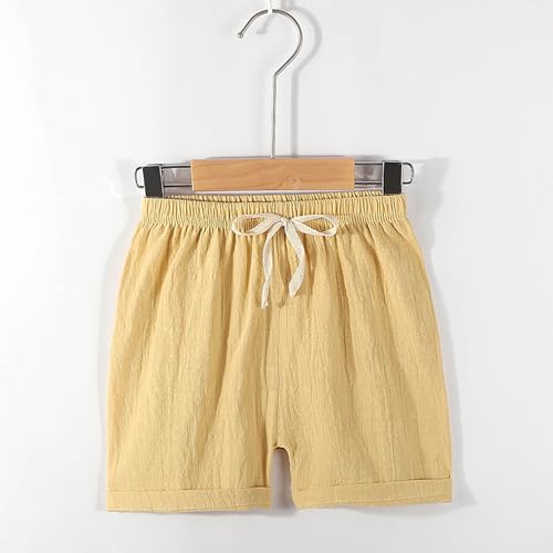 HOT ! 4-Pack Girls Cotton Linen Shorts Casual Kids Comfy Elastic Waist Loose Summer Beach Shorts with Pockets for 2-12 Years
