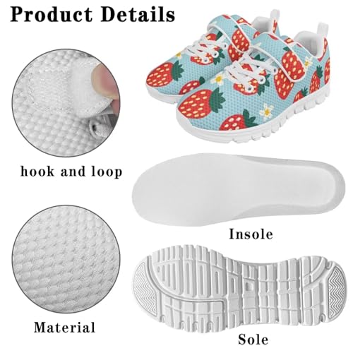 More information about Little Kid Shoes for Boys & Girls Breathable Tennis Running Sneakers for Kids Strawberry Floral Pattern(White Sole)