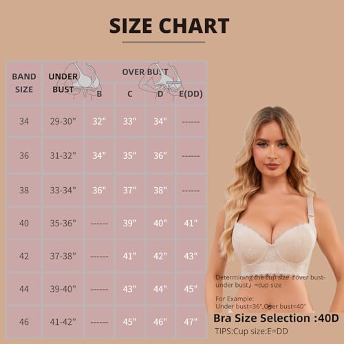 More information about Push Up Bras for Women Lace Underwire Add One Cup Bra with Support Smoothing Bra(34B-46DD)