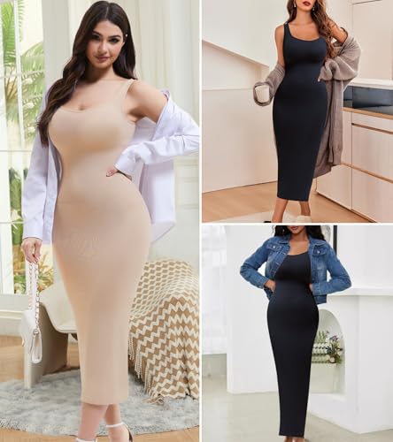 HOT ! Shapewear Full Slip for Under Dresses, Tummy Control Slip Dress for Women, Square Neck Long Slimming Dress