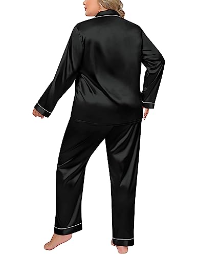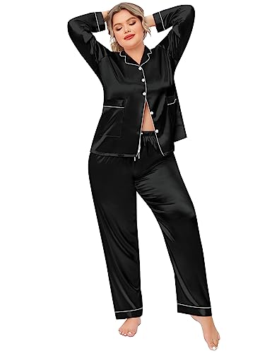 SWOMOG Women Plus Size Long Sleeve Pajamas Silk Satin Pajama Sets Button Down Sleepwear Pjs Loungewear with Pockets 1