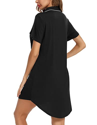 Pjmlifecoco Nightgowns for Women Button Down Sleepshirt Short Long Sleeve Nightshirt Pajamas Nightdress S-XXL 4