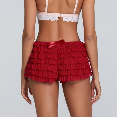 HOT ! Lolita Lace Bloomer Women Y2k Ruffle Layered Pajama Mini Shorts Pumpkin Mesh Micro Pants Boy Bottom Lounge Panties