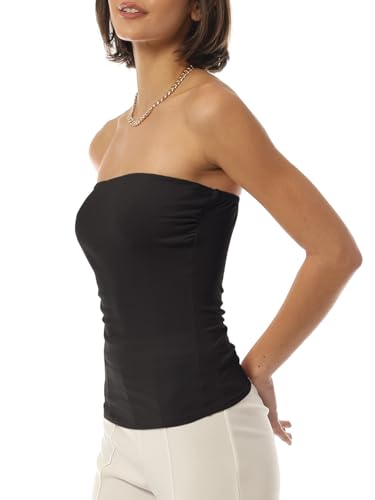 MixMatchy Women's Basic Casual Stretchy Long Bandeau Tube Top Strapless Undershirts 6