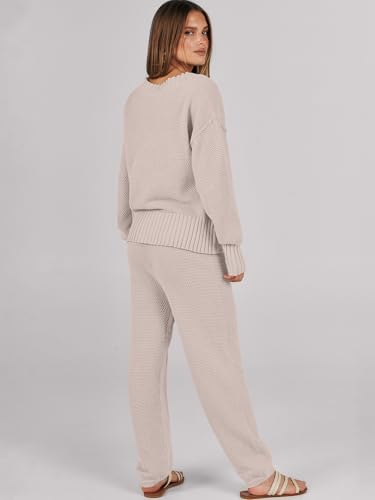HOT ! Caracilia Womens 2 Piece Outfits Lounge Set V Neck Cardigan Sweater Pants Sets Knit Matching Loungewear 2025 Fall Clothes