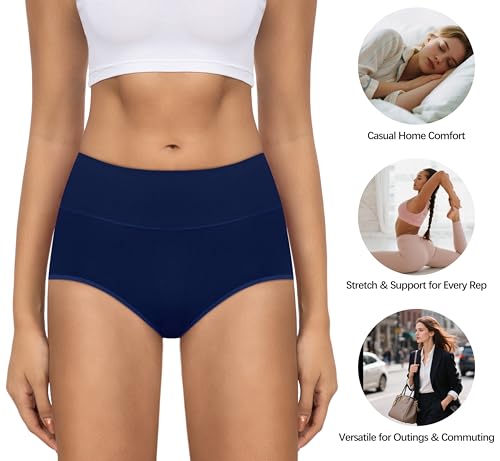• Soft Cotton Stretch & No Muffin Top: Premium cotton fabric with stretch offers full back coverage with no pinching, binding, or panty lines. Comfy high-rise design provides gentle tummy support to smooth muffin tops