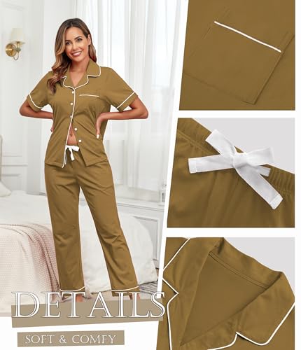 ANLIQI 100% Cotton Pajamas for Women Set Short Sleeve Top & Pajama Pants Button Down Sleepwear Pjs Lounge with Pockets 4