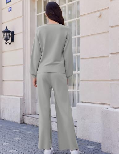 Ekouaer Lounge Sets for Women 2 Piece Sets Knit Sets Long Sleeve Winter Sweater Wide Leg Pants Outfits 2