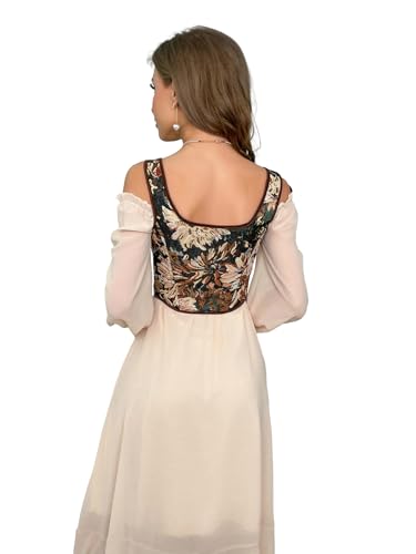 Renaissance Floral Corset Tops for Women - Vintage Lace Up Bustier Overbust Lingerie Going-Out Tops 4