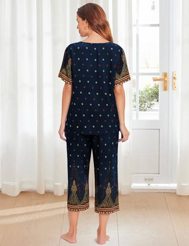 Ekouaer Women's Two Piece Lounge Set Short Sleeve Shirt and Capri Pants Mumu Pajama with Pockets Loungewear Pjs Sets 2