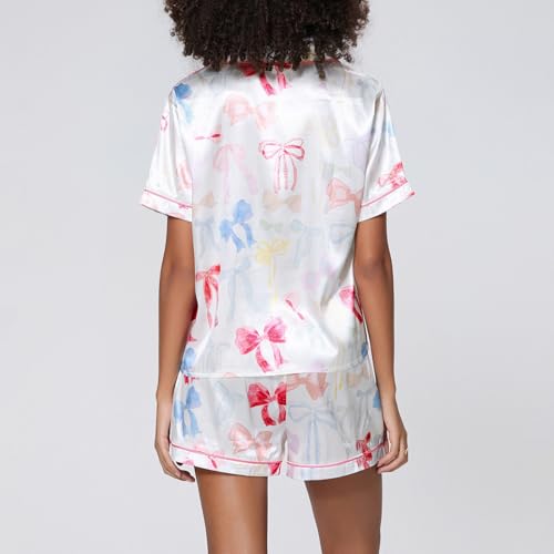 • Cute Design: Women 2 piece cute pajamas sets, Christmas pajamas sets for women, lounge set for women, party pj set, cute santa, Christmas tree, bow knot, graphic printing, long sleeve, front button and lapel collar. Matching with high waist shorts, elegant and cozy to wear
