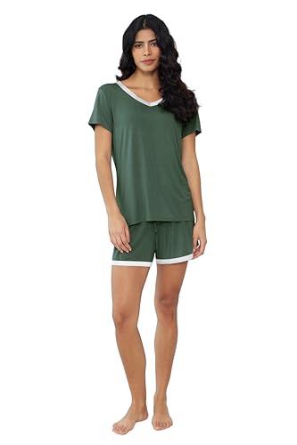 HOT ! Joyaria Cooling Pajamas Bamboo Viscose Women Short Sleeve V Neck PJ Shorts Set
