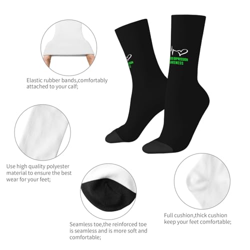 HOT ! Childhood Depression Awareness Green Ribbon Moisture Wicking Crew Socks Athletic Half Calf Socks Unisex Novelty Design Comfortable Breathable4