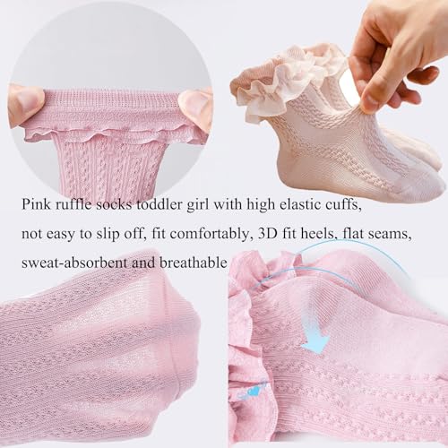 Little Girl Ruffle Socks, Pink Ruffle Socks Toddler Girl, Cotton Breathable Mesh Ankle Sock, Cute Frilly Dress Sock 4