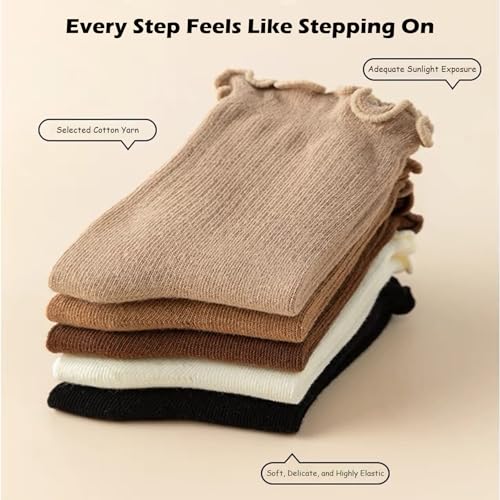 Socks for Girls Mid-Calf Ruffed Crew Socks Ribbed Cuffs Solid Classical Fashion Casual Socks Girls 5 Pairs 5