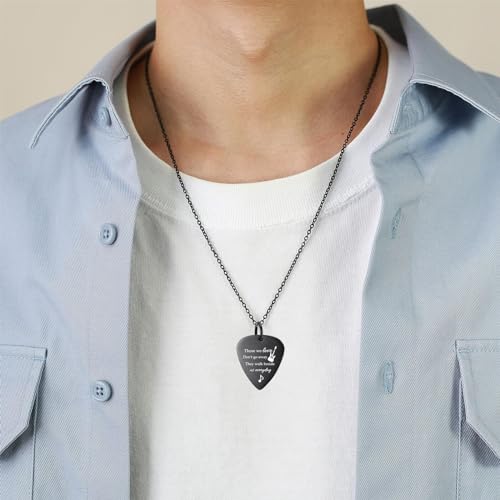 • ►Size - Guitar pick ashes pendant: 0.74”L*0.9”H ; adjustable chain length: 50+5cm (19.7+1.97"); Package includes: 1 Pendant + 1 chain + 1 filing kit. Those we love don't go away,they walk beside us every day, a beautiful way to express your remembrance and honor your dear by this quote