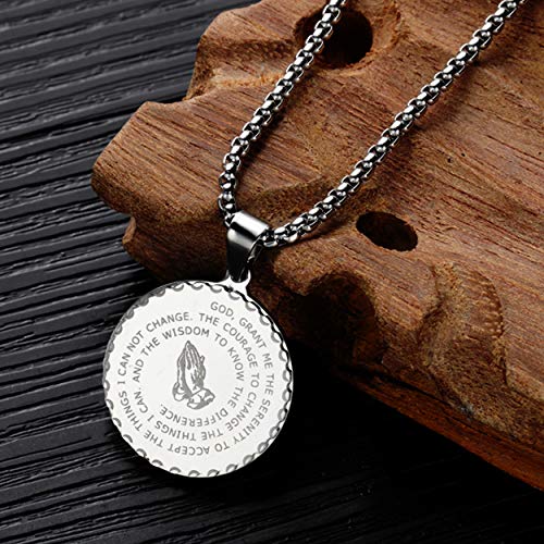 HOT ! Rehoboth Stainless Steel Coin Medal Our Father Lord's Prayer Cross Pendant Necklace for Women Men Prayer Hands Coin Medal Pendant 24" Chain Black Gold Silver