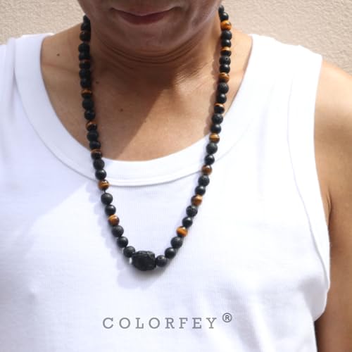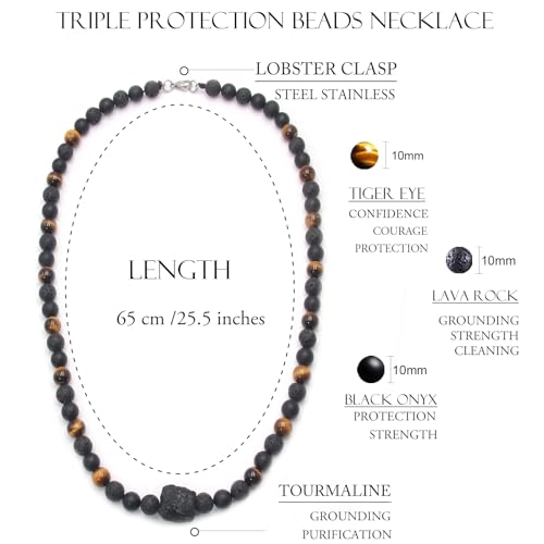 • 【Healing Properties】This necklace harmoniously blends four healing stones - black tourmaline, tigers eye and lava, and onyx - utilizing the healing vibrations of each element. Black tourmaline has protective and grounding energies, tiger's eye is prized for its ability to increase mental clarity and focus, lava is believed to promote emotional balance and stability, and black onyx helps to release stress.
