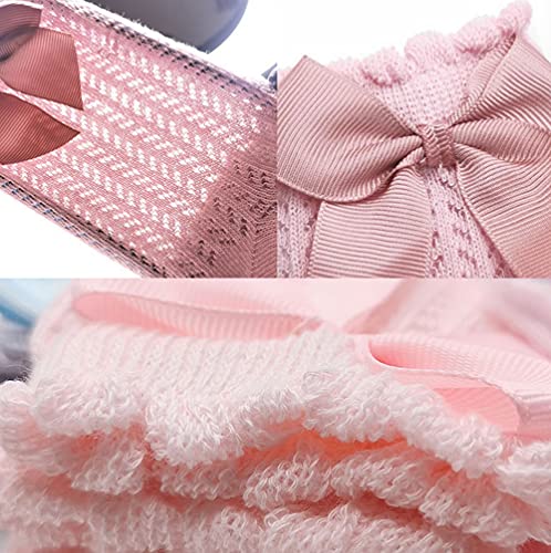 Sywwlov 5 Pairs Baby Girls Knee High Socks Infant Toddler Bow Knit Mesh Cotton Socks Tube Ruffle Stockings 4