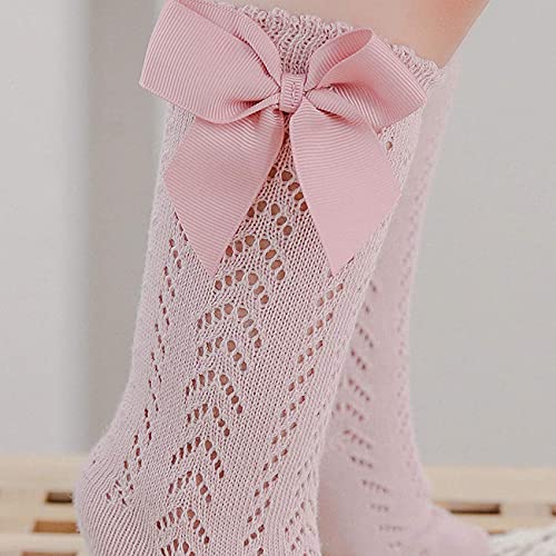 Sywwlov 5 Pairs Baby Girls Knee High Socks Infant Toddler Bow Knit Mesh Cotton Socks Tube Ruffle Stockings 3