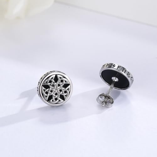 Black Onyx Stud Earrings for Men 925 Sterling Silver Viking Rune Tree of Life/Celtic Knot/Cat/Eye of Horus Earring Nordic Rune Viking Jewelry Gifts for Christmas Birthday Father's Day New Year 4
