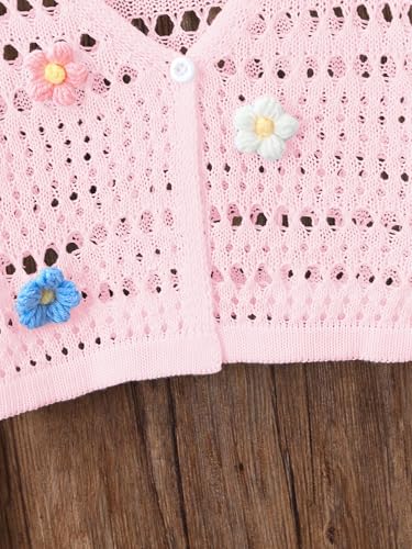 More information about Verdusa Girl's 3D Floral Applique Long Sleeve Hollow Out Knitted Button Up Cardigan
