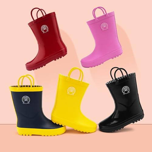 Stelle Toddler Rain Boots Natural Rubber Rainboots Kids Girls Boys Waterproof Easy On Handles Non-Slip Sole 5