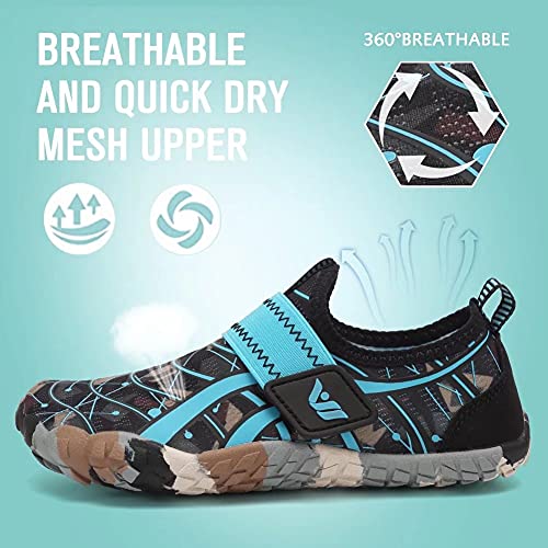 • BREATHABLE VAMP & ANTI-SLIP: The water shoes for kids with flexible and comfortable uppers, breathable fabrics, fine stretch. These boy & girl water shoes made of upgraded rubber sole and soft thickening Insole protect your feet from getting hurt by rock and sharp objects,good performance on water activities.