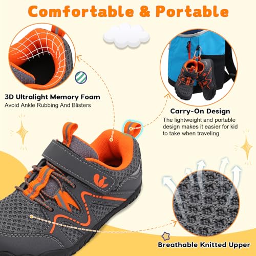 FEETCITY Kids Barefoot Shoes Boys Girls Sneakers Toddler Walking Shoes Kids Hiking Shoe Lightweight Outdoor Tennis Shoe 5
