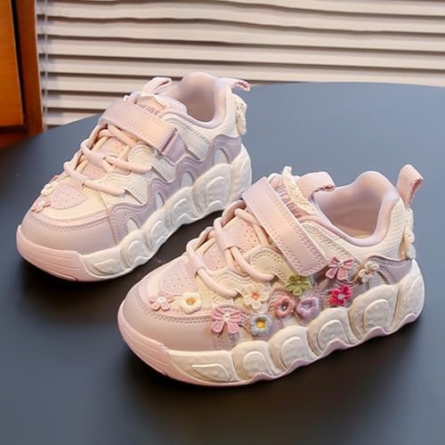 Girls Cute Sneakers Embroidered Floral Wide Trainers Kids Trendy Breathable Soft Lightweight Anti-Slip Flat Shoes 5