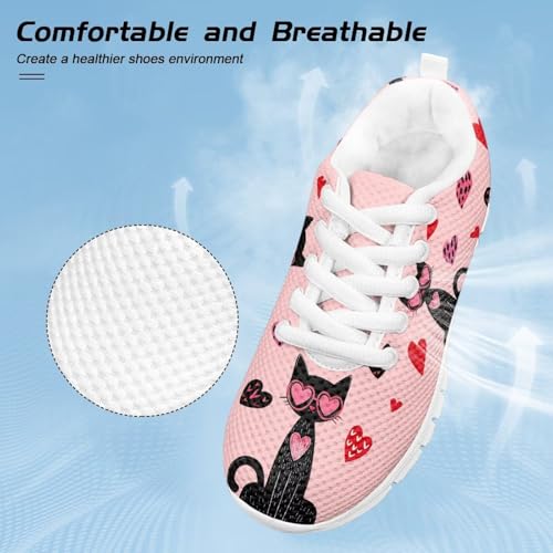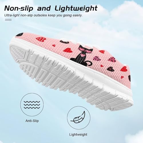 Yzaoxia Black Cat Athletic Running Shoes for Girls Size 4 Love Hearts Tennis Shoes Kids Sneakers Mesh Walking Sneaker Sport Footwear Non Slip Trainers Pink 4
