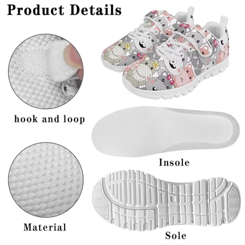 More information about Little Kid Tennis Shoes Slip On Boys Girls Sneakers Casual Running Shoes Woven Breathable with Soft Soled Sports Hook-Loop Outdoor Shoes Cartoon Hippo Pattern(White Sole)