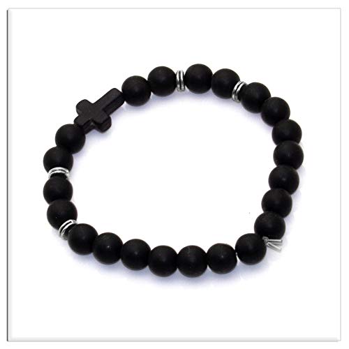 Xusamss Fashion 8MM Matte Agate Beads Bracelet Cross Elastic Bracelet,7 1/2 wrist 1