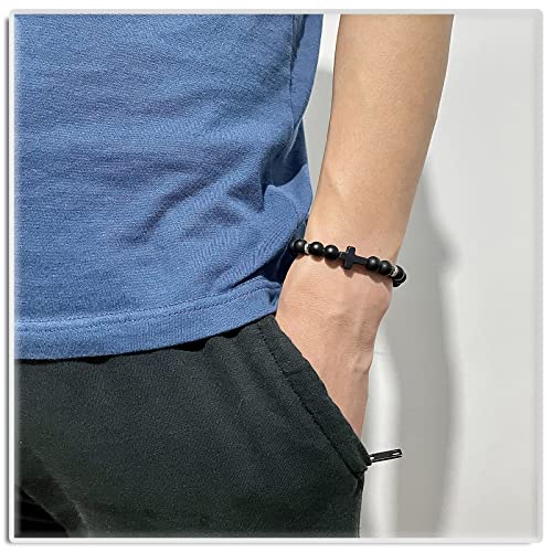 Xusamss Fashion 8MM Matte Agate Beads Bracelet Cross Elastic Bracelet,7 1/2 wrist 5