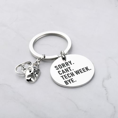 • Engraved with the sentence " Sorry I Can’t It’s Tech Week ". We only stamp on one side of the keychains!