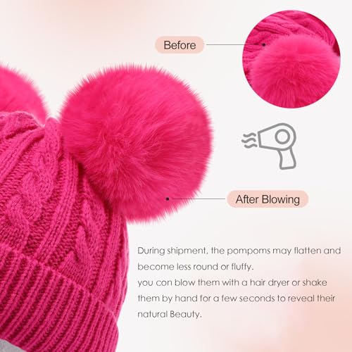 Kids Winter Beanie Hat Warm Fleece Lined Knitted Ski Cap with Double Pom Pom for Boys Girls Ages 7-12 6