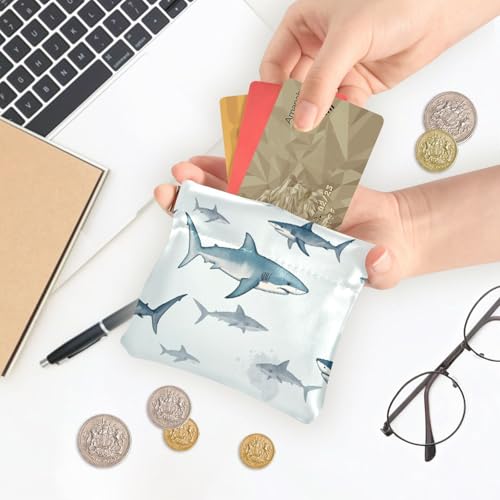 HOT ! Watercolor Sharks Coin Purse Leather Pouch Change Purse, Squeeze Coin Pouch for Cards, Keys & Lipsticks, Unisex
