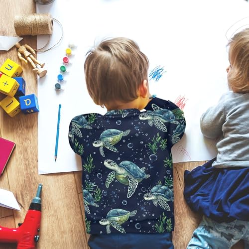 JUNZAN Cartoon Brazilian Turtle Navy Blue Kids Boys Hoodie Sweatshirt Crewneck Fall Tops Shirts Camping 4T 2
