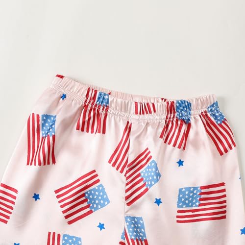 • Design: The tops have short sleeve, turn-down collar, button closure, pair with a pair of elastic waist shorts. The flag printed pjs for girls makes your daughter more adorable.