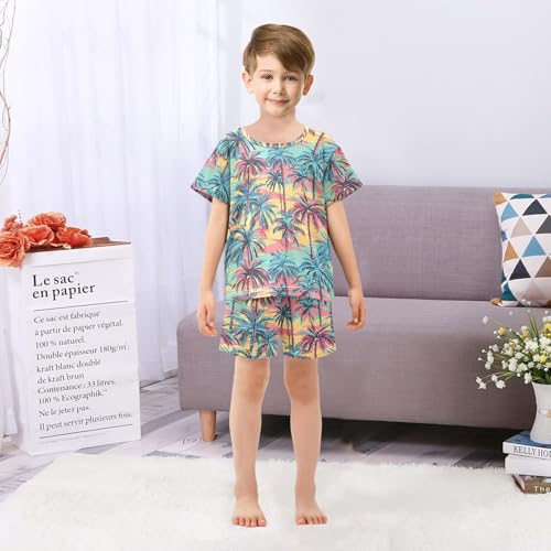 ALAZA Hawaiian Palm Leaves Blue Yellow Pajamas Short Sleeve 2 Piece Sleepwear Top and Bottom Pajama Set Unisex 2