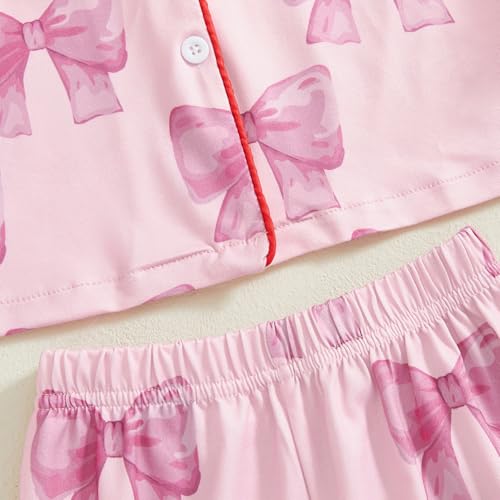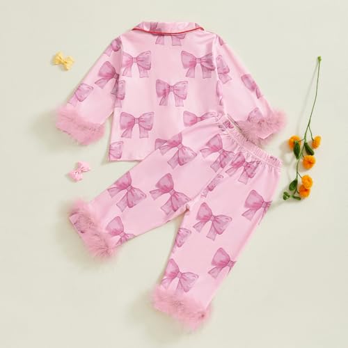 Qiylii Kids Baby Girl Bowknot Button-Down Pajamas Feather Trims Shirt and Pants 2PC Long Pajama Set Holiday Sleepwear 7