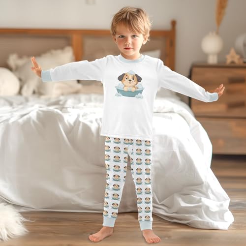 Cartoon Pajamas Set Dog Sitting in A Bath Long Sleeve PJs Cotton Jammies Sleepwear Top and Pants Multicolor 6