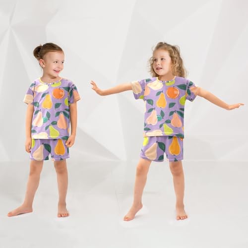 Pear Purople Pajama Set Short Sleeve PJS 2 Piece Summer Pajamas Shorts Sets Cotton 5Y 6