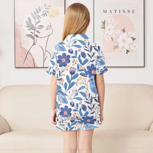 Blue Floral Bird Pajamas Set Summer Button Down Sleepwear Pjs Sets Comfy Loungewear 7