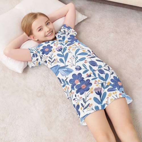 Blue Floral Bird Pajamas Set Summer Button Down Sleepwear Pjs Sets Comfy Loungewear 5