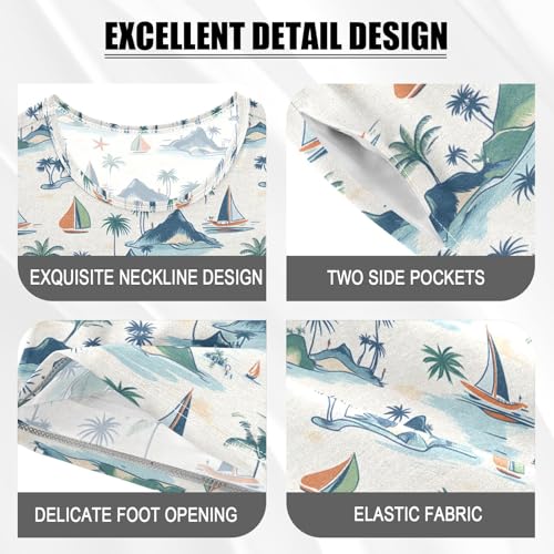 More information about Palm Tree Sailboat Mountain Pajama Set, Short Sleeve Cotton Sleepwear Nightwear