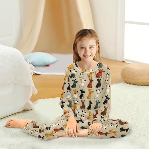 Long Sleeve Pajama Set for Girls Boys,Dogs Sitting in Rows Comfy Crewneck Sleepwears,Soft Kid's Homewear Clothes Underwear Sets 8T 4