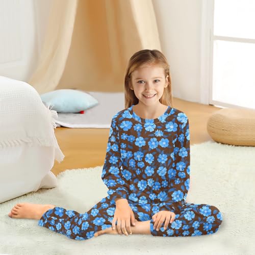Floral Blue Pattern Print Soft Pajama Set for All Seasons,Breathable Pjs Long Sleeve Sleepwear,Comfy Loungewear 2 Piece Underwear Set 8T 7