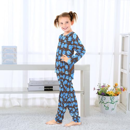 Floral Blue Pattern Print Soft Pajama Set for All Seasons,Breathable Pjs Long Sleeve Sleepwear,Comfy Loungewear 2 Piece Underwear Set 8T 4